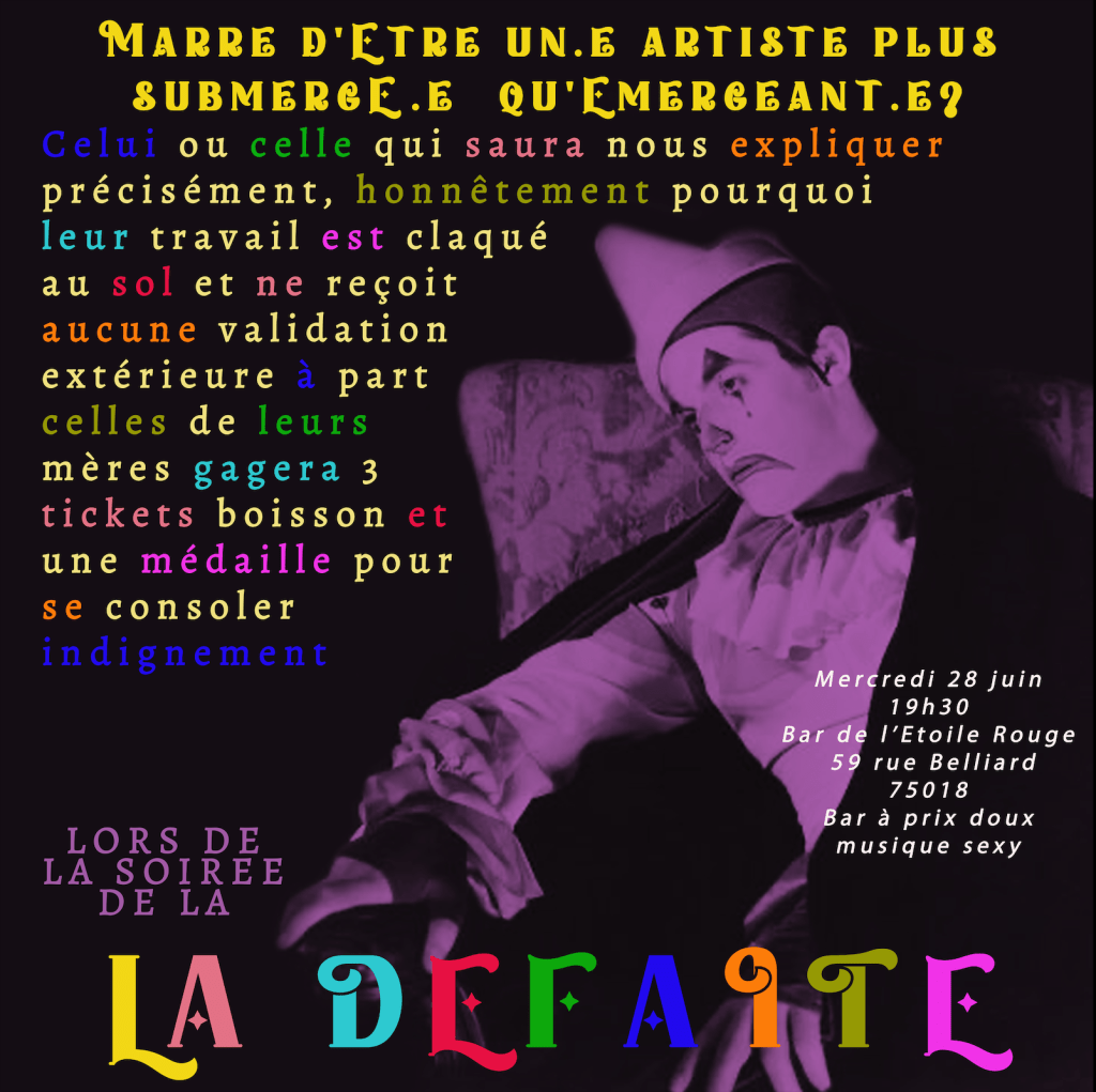 Oeuvre de Sascha SoferLa fête de la soupe à Lille avec Morgane ClercLes gens boivent l’eau de mon bainSoirée thème funérailles (je suis Jessica Rabbine)