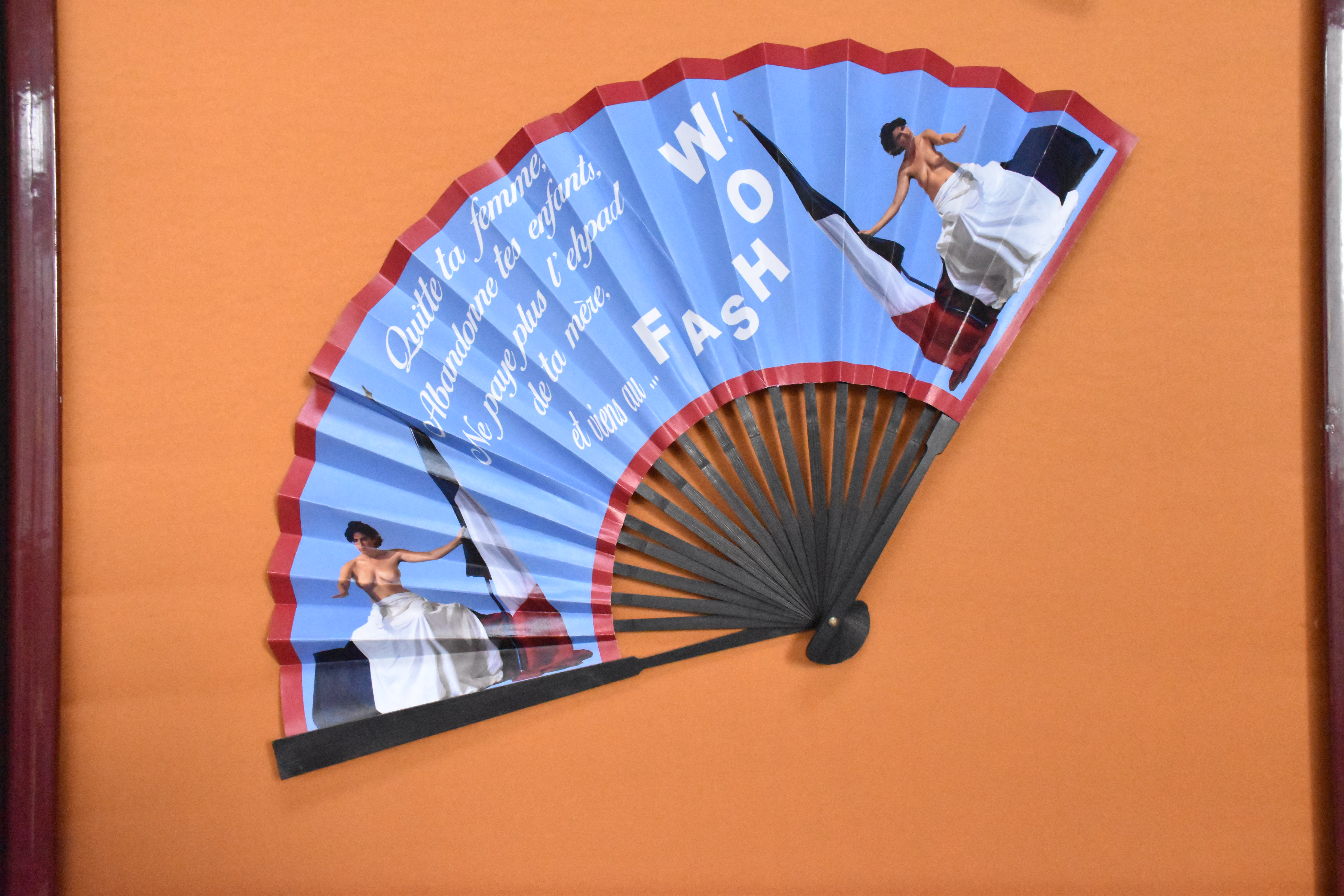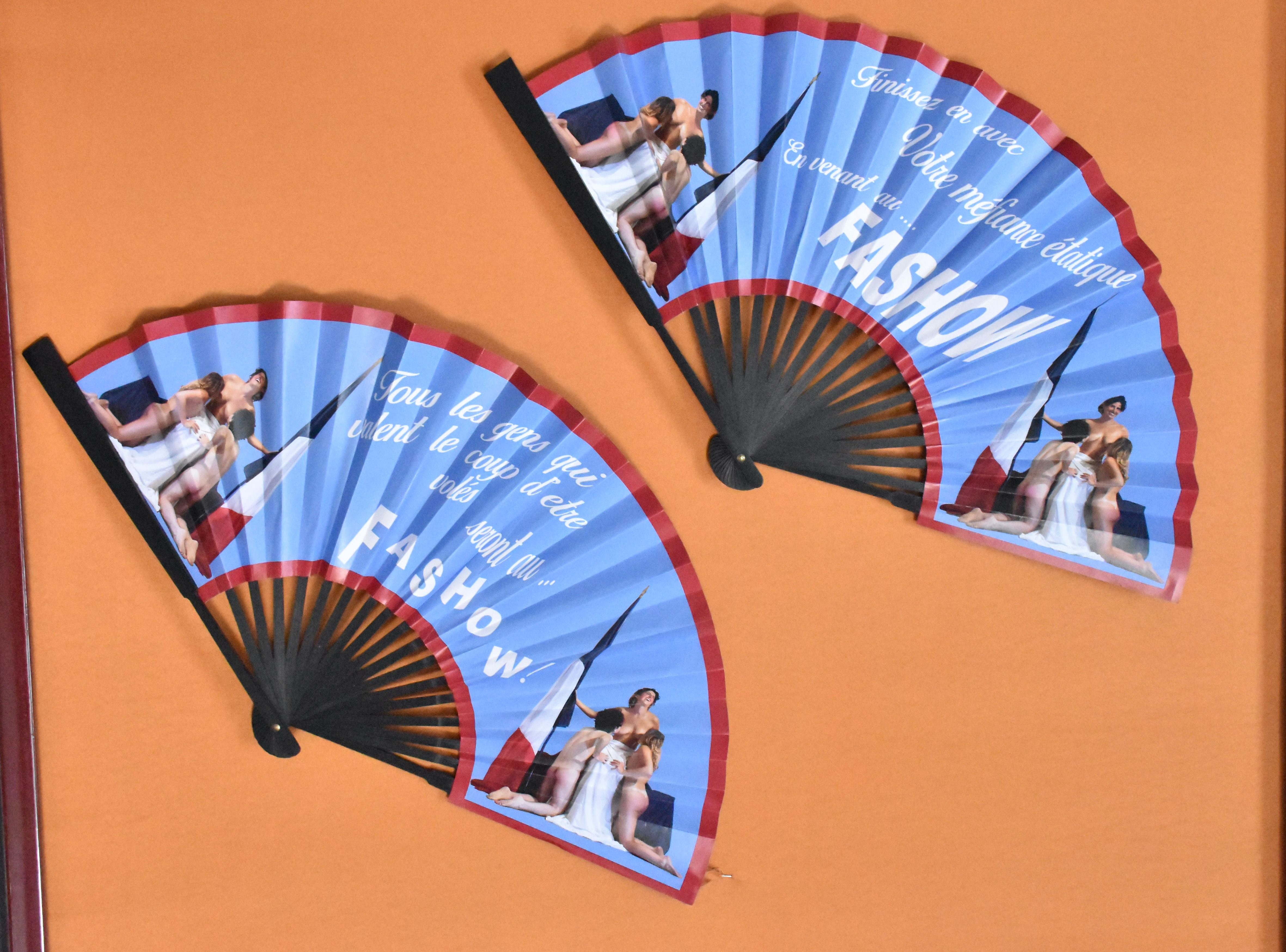 Ces éventails font la promotion d’un futur cabaret nommé le ‘Fashow’. Les nationalistes extrêmes montent et les intermittents n’y échapperont pas. Surveiller vos réseaux, le spectacle arrive.
