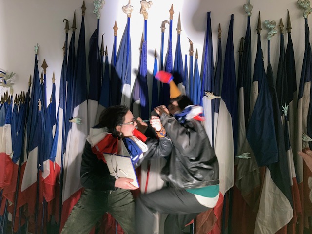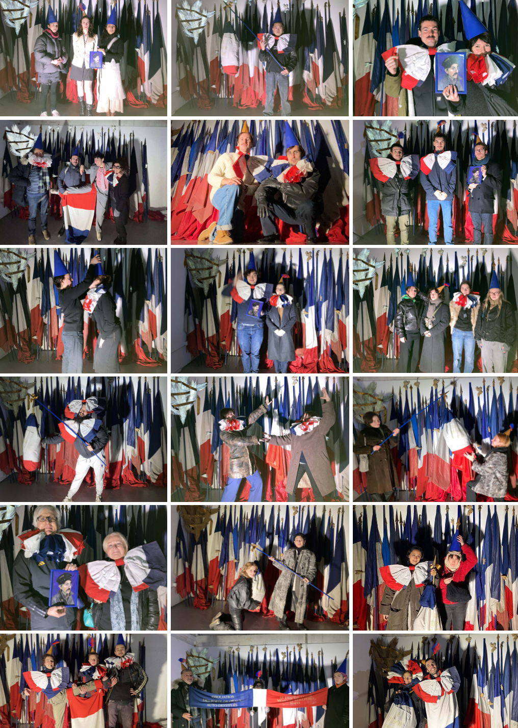 L’oeuvre est un photocall et se compose d’un fond et d’accessoires. Le public est encouragé à se prendre en photo. Certains éléments du décors sont réfléchissants et brillent avec le flash. Voir l’installation