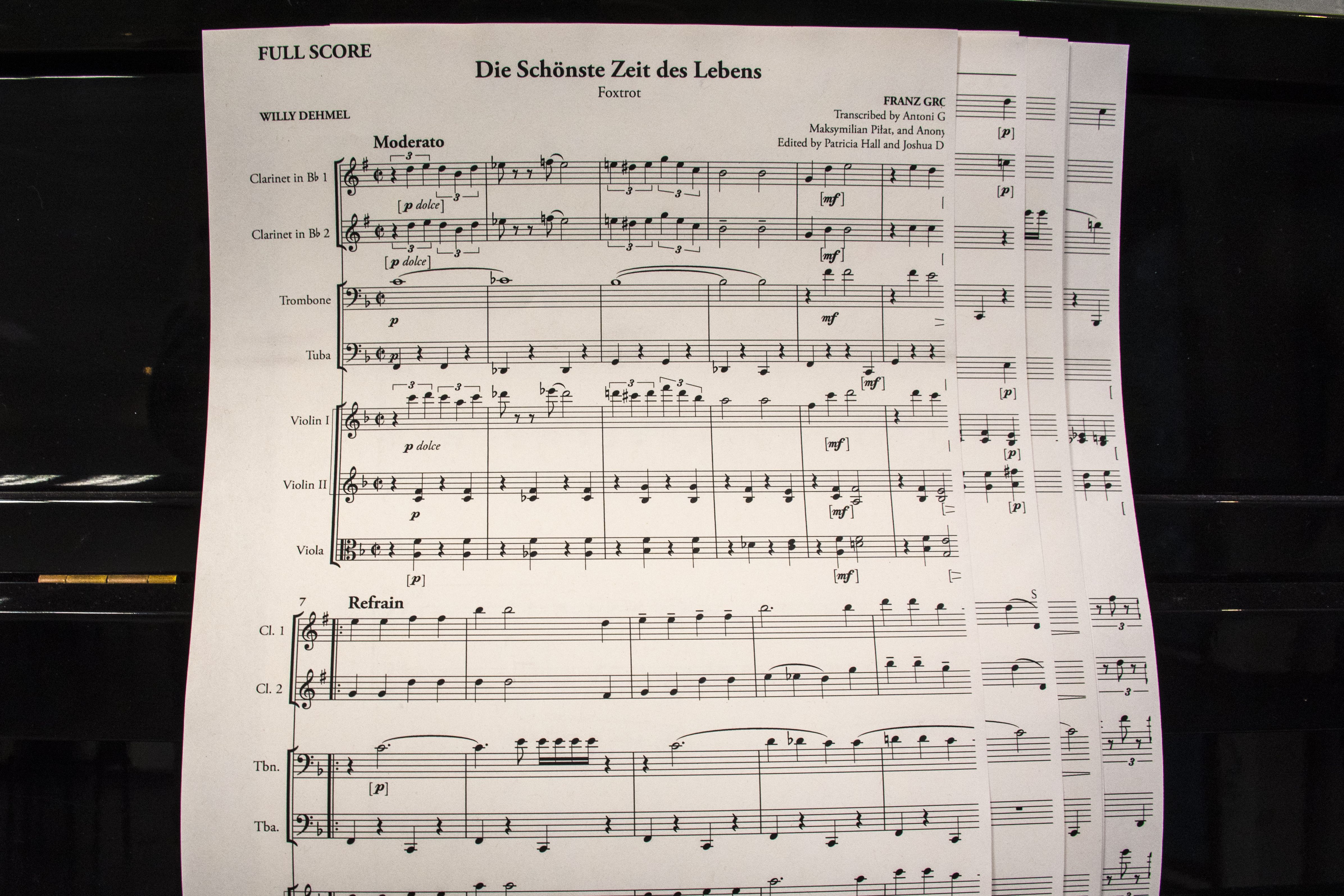 J’ai touvé cette partition du morceau ‘Le plus beau moment d’une vie’. Il a été composée par Franz Grothe puis arrangé par les déténus du camp d’extermination d’Auschwitz pour correspondre au peu d’instrument disponible. La musique était souvent utilisée dans les camps notamment pour acceuillir les nouveaux détenus. Ce morceau est un foxtrot et donc est particulierement joyeux. Tout était organisé pour maintenir une illusion de sécurité.
